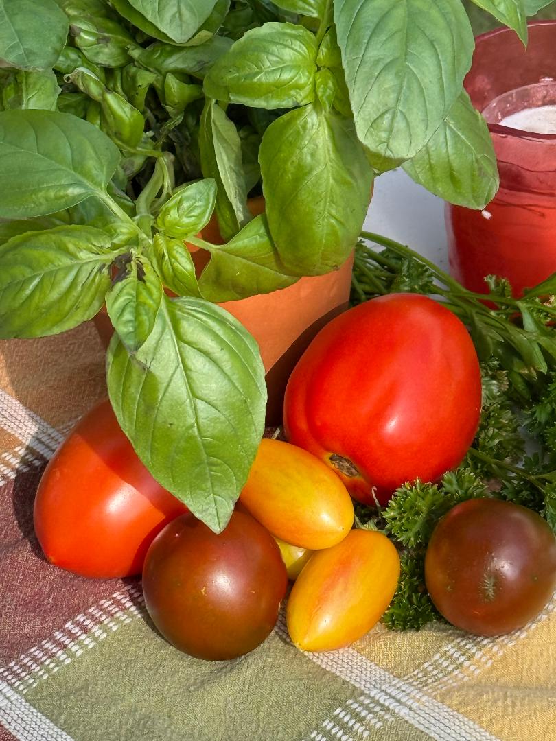Throughout the year, you can expect a wide array of produce, flowers, herbs, and plants grown right here at our home.